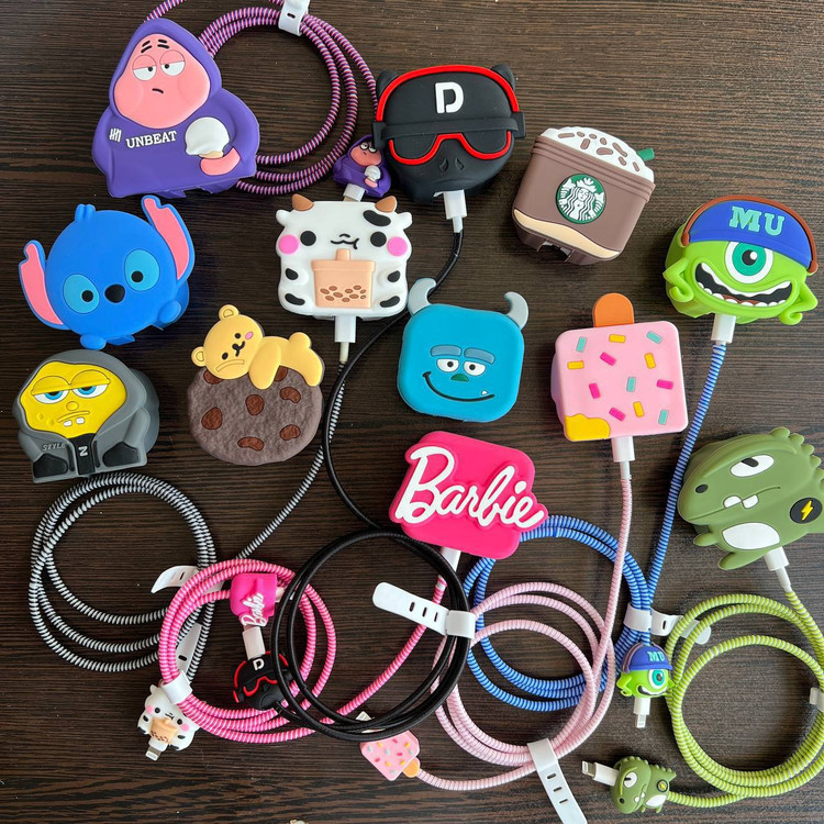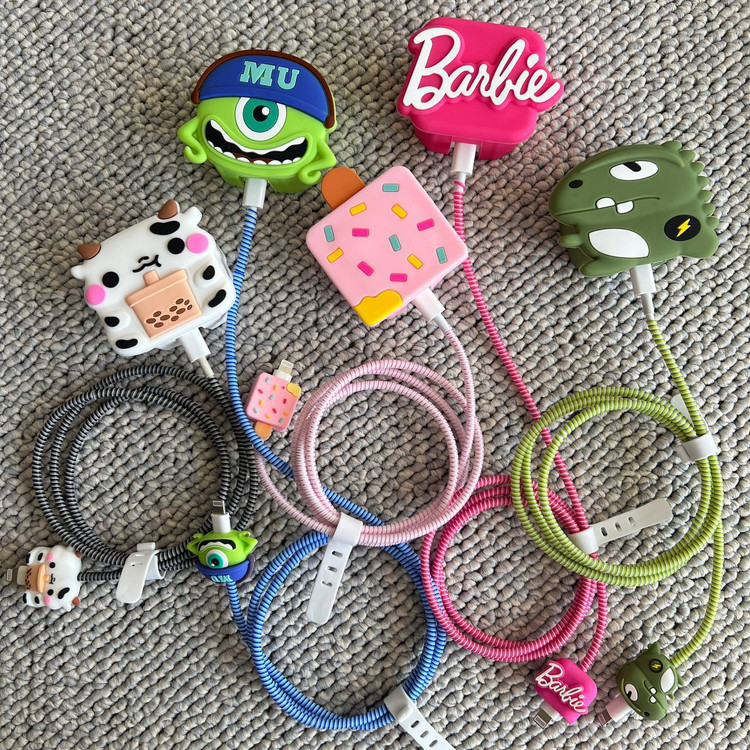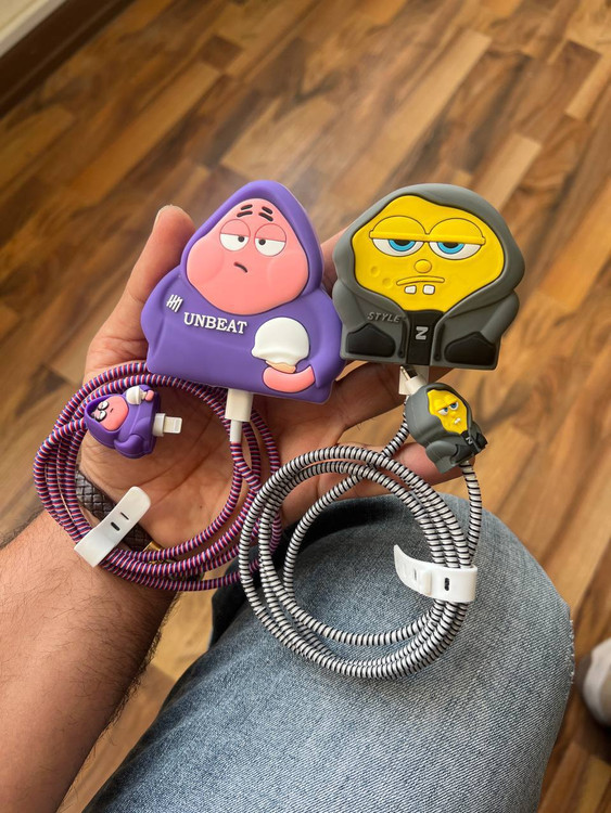 یک پکیج چهار عددی شامل: محافظ شارژر دو تایی، محافظ کابل و کش سیلیکونی برای نظم دهی کابل شارژ