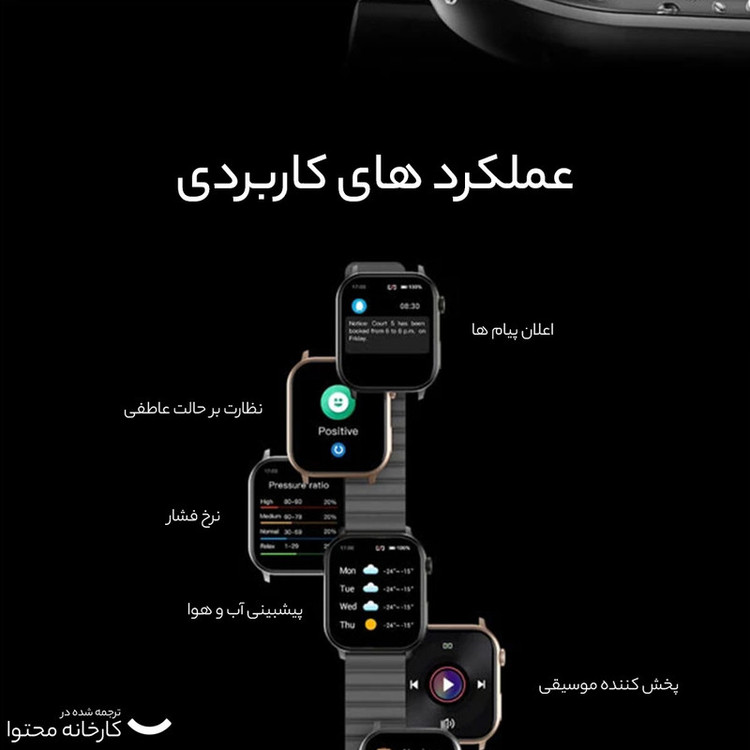 صفحه نمایش رنگی , صفحه نمایش لمسی , کنترل موسیقی (Music Player) , کنترل سطح اکسیژن خون , قابلیت مکالمه از طریق بلوتوث