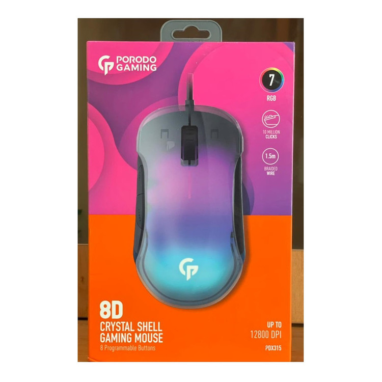 موس گیمینگ بی سیم RGB برند معتبر پرودو Porodo PDX315 یکی از قدرتمند ترین و زیباترین موس های گیمینگ به شمار میآید. این موس گیمینگ با کیفیت قادر است تمامی نیاز های گیمرها را با داشتن امکانات و ظاهری مدرن و جذاب، کاملا برطرف سازد. در ادامه به معرفی ویژگی های کلیدی این موس گیمینگ حرفهای میپردازیم. برای تهیه تجهیزات گیمینگ، معمولا دغدغه های فراوانی پیش روی گیمر ها قرار دارد. یکی از مهمترین آن دغدغه ها، سرعت واکنش و پارامتر های سرعتی/دقتی آن تجهیزات است. به خصوص ماوس های گیمینگ. موس گیمینگ پرودو Porodo PDX315، با بهره گیری از سنسوری با کیفیت، دقت و سرعت فوق العاده تا 12800 DPI را ارائه میکند. که تمام نیاز های گیمر را پاسخ میدهد. بدنه شفاف و طراحی تنفسی RGB چشم نواز و بسیار جذاب موس گیمینگ خوش قیمت و پر طرفدار RGB برند پرودو Porodo، با المان های منحصر به فرد و زیبایی طراحی شده است. این روز ها یکی از الزامات ابزار و تجهیزات گیمینگ، داشتن نور های RGB زیبا و چشم نواز است که به ستاپ و اتاق شما جلوهای تازه و حرفهای میبخشد. بدنه این موس شفاف است تا 7 رنگ RGB آن به صورت تماشایی و زیبا به نمایش در بیایند.