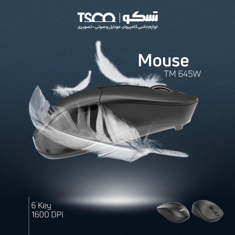 ماوس تسکو مدل TM 645W یکی از محصولات با کیفیت و مقرون به صرفه برند تسکو است که برای کاربرانی که به دنبال یک ماوس بیسیم، با دوام و طراحی کاربردی هستند، گزینهای ایدهآل محسوب میشود. این ماوس با طراحی ارگونومیک، وزن سبک و قابلیتهای منحصر به فرد خود، تجربهای راحت و کارآمد را برای کاربر فراهم میکند. در ادامه، نگاهی به ویژگیها و مزایای این محصول خواهیم داشت. اتصال بیسیم 2.4 گیگاهرتز: این ماوس از تکنولوژی اتصال بیسیم 2.4 گیگاهرتزی بهره میبرد که امکان استفاده بدون نیاز به کابل و با آزادی عمل بیشتر را فراهم میکند. دانگل USB همراه با ماوس، به راحتی به پورت USB کامپیوتر شما متصل شده و ارتباط پایداری را برقرار میکند. با وزن 75 گرم و ابعاد 110x64x37 میلیمتر، این ماوس بسیار سبک و کوچک است، به طوری که استفاده طولانی مدت از آن بدون خستگی دست امکانپذیر است و به راحتی قابل حمل در کیفهای کوچک میباشد. جنس بدنه این ماوس از پلاستیک ABS با کیفیت ساخته شده است که علاوه بر مقاومت بالا، ظاهری جذاب دارد. این جنس همچنین دوام بالایی در برابر ضربات و خط و خشها فراهم میکند. این ماوس دارای سه حالت DPI با مقادیر 1000، 1200 (به صورت پیشفرض) و 1600 است که به کاربر امکان میدهد تا سرعت حرکت نشانگر ماوس را بر اساس نیاز خود تنظیم کند. ماوس TM 645W دارای شش کلید است که هر یک از این کلیدها دارای طول عمر سه میلیون بار کلیک میباشند. این ویژگی تضمین کننده عملکرد طولانی مدت و با دوام ماوس است. این ماوس با برد عملیاتی تا 8 متر، امکان استفاده از فاصلهای معقول را برای کاربر فراهم میکند، که برای ارائههای کاری و استفادههای روزمره بسیار کاربردی است . این ماوس با سیستمعاملهای ویندوز، لینوکس، اندروید باکس و مک سازگار است و این ویژگی انعطافپذیری بالایی برای کاربران مختلف به ارمغان میآورد. ماوس تسکو مدل TM 645W تنها با استفاده از یک باتری AA کار میکند که مصرف انرژی پایینی دارد و نیاز به تعویض مکرر باتری را کاهش میدهد. روشن و خاموش کردن آسان: این ماوس مجهز به کلید روشن و خاموش است که به کاربر امکان میدهد تا در زمان عدم استفاده، آن را خاموش کند و از مصرف بیمورد باتری جلوگیری کند.
