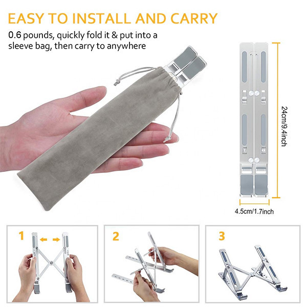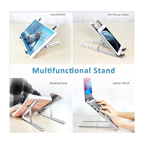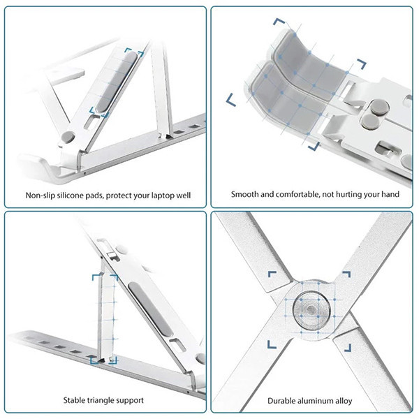 به فکر سلامتی خود و لپ تابتان باشید. لپتاپها از کالاهای دیجیتال گران بوده و نگهداری و استفاده درست از آنها اهمیت بالایی دارد. پایه نگهدارنده لپ تاپ مدل CS5158 مکمل خوبی برای لپتاپ شما است و از آن به بهترین شکل ممکن حفاظت میکند. این محصول تنها 200 گرم وزن داشته و جنس بدنه آن از آلومینیوم است. این پایه نگهدارنده لپ تاپ برای لپتاپهای تا ۱۵.۶ اینچی مناسب است و نیاز به فن ندارد. حتما برایتان پیش آمده بعد از استفاده طولانی از لپتاپ داغ کرده و شما را دچار نگرانی میکند. با این پایه نگهدارنده لپ تاپ دیگر نگران نباشید. سیستم خنککنندگی این پایه نگهدارنده لپ تاپ رسانایی و جریان طبیعی همرفت هوا است. شما قادر به تنظیم زاویه و ارتفاع پایه بوده و متناسب با فعالیتی که انجام میدهید و ارتفاعی که نیاز دارید سطح ارتفاع لپتاپ خود را مشخص کنید. وزن بسیار سبک این محصول باعث شده بهراحتی قادر به حمل آن باشید و زمانی که به دانشگاه یا کتابخانه و یا محیط کار خود میروید آن را همراه داشته باشید. این پایه حافظ سلامت شما و لپ تاپ شما می باشد.