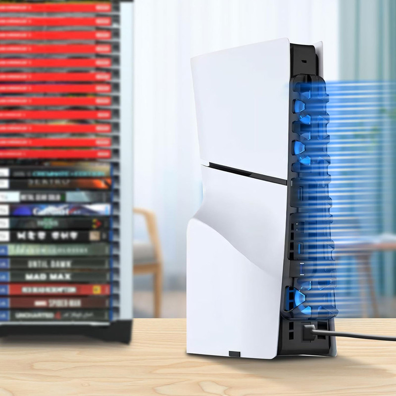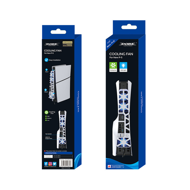 فن خنک کننده Dobe مدل TP5-3538 برای PS5 مناسب برای انواع پلی استیشن 5 اسلیم چه Standard و چه Digital می باشد. این فن خنک کننده دارای سه فن می باشد که کمک می کند دمای کنسول PS5 کاهش پیدا کند. همچنین این فن خنک کننده طوری طراحی شده است که می توان به عنوان نگهدارنده هدست هم استفاده کرد.