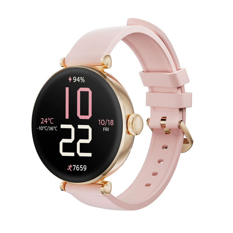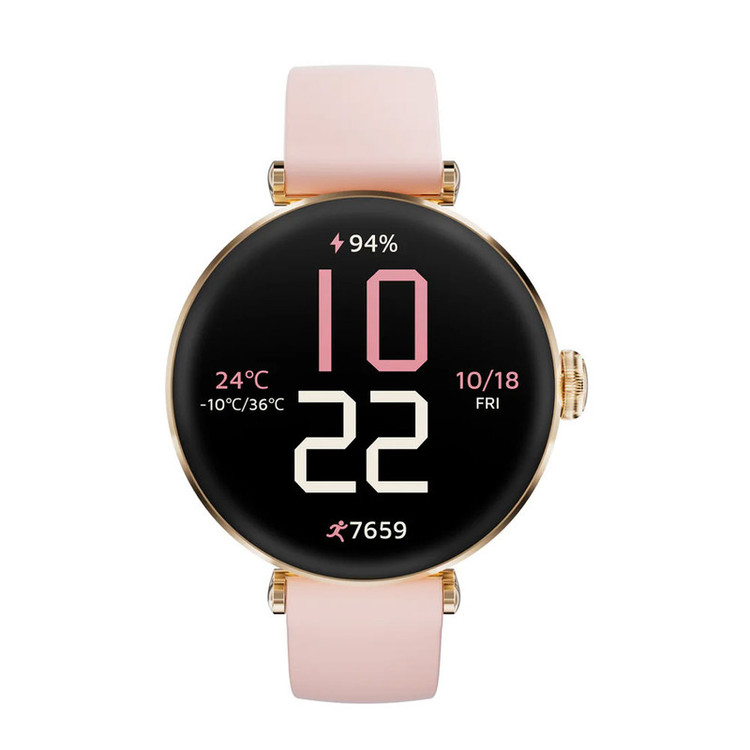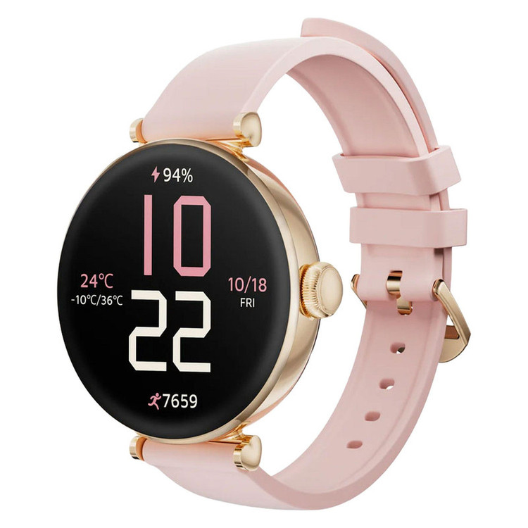 ساعت هوشمند کیسلکت مدل Pura، مناسب برای ورزش، دارای قابلیتهای صفحه نمایش رنگی و لمسی، قابلیت نمایش سطح اکسیژن خون، بند سیلیکون رنگ طلایی