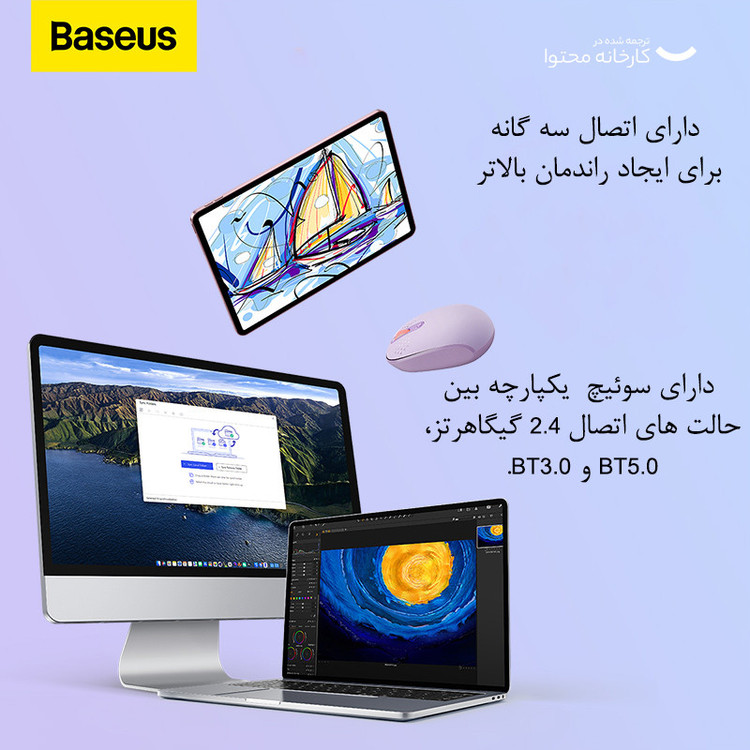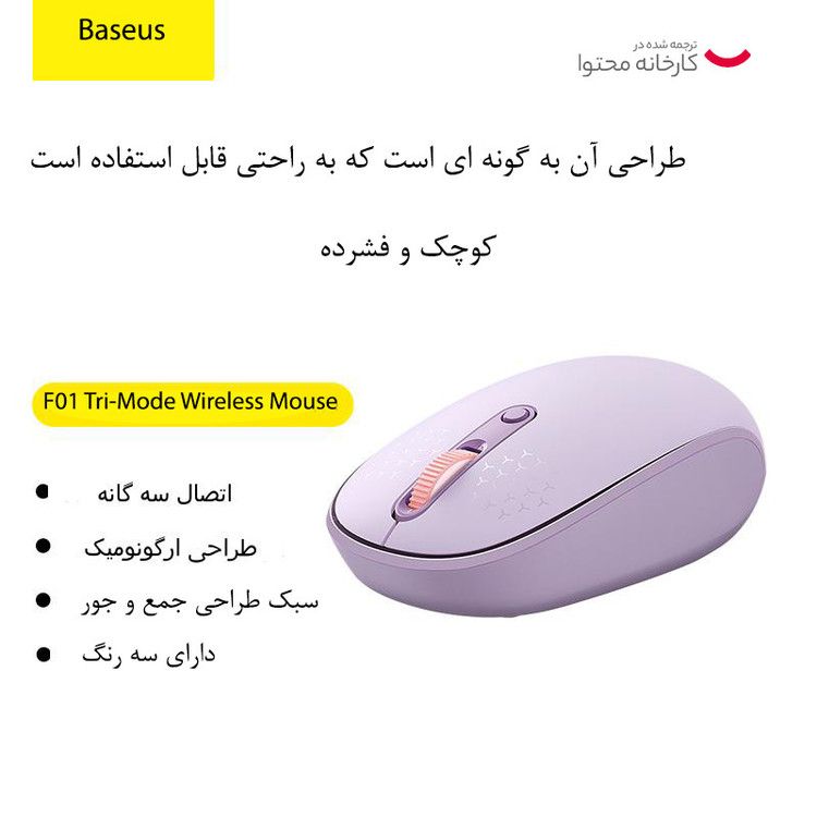 موس یکی از لوازم اصلی کامپیوترهای شخصی محسوب میشود، لذا کمپانی بیسوس که از تولیدکنندگان حوزه لوازم جانبی است به تازگی ماوس بی سیم بیسوس مدل F01B Tri-Mode را طراحی و به بازار عرضه کرده است. این محصول دارای طراحی خاص، زیبا، ارگونومیک، سبک، راحت و متناسب با دست بوده که در استفاده طولانی مدت، شما را دچار خستگی نخواهد کرد. همچنین دکمههای این موس کاملاً بیصدا بوده و در محیطهای عمومی به راحتی می توانید از آن استفاده نمایید. ماوس بی سیم بیسوس مدل F01B دارای 5 کلید است. این کلیدها شامل: کلیک چپ، کلیک راست، غلطک وسط موس و یک کلید مخصوص تغییر درجه حساسیت (dpi) و یک دکمه نیز برای سوییچ بین دستگاههای متفاوت است. ماوس بی سیم بیسوس مدل F01B از طریق وایرلس باند 2.4 گیگاهرتز به سیستم مورد نظر شما متصل می شود. با این حال اما این موس قابلیت اتصال به دو دستگاه دیگر نیز از طریق بلوتوث نسخه 5.0 و بلوتوث نسخه 3.0 را دارد. این موس بعد از اتصال نیازی به نصب برنامه خاصی ندارد. ماوس بی سیم بیسوس مدل F01B دارای سه دقت 800، 1200 و 1600 است و همینطور از سنسور اپتیکال (نوری) پشتیبانی می کند. همچنین محدوده عملکرد این موس بدون در نظر گرفتن مانع و دیوار 10و 20 متر است و با با سیستم عامل های Windows | HarmonyOS | Apple OS | Linux | Vista سازگاری دارد. موس سه حالته وایرلس بیسوس با یک باتری قلمی یا همان AA قابل استفاده بوده که پاسخ دهنده نیاز شما خواهد بود.