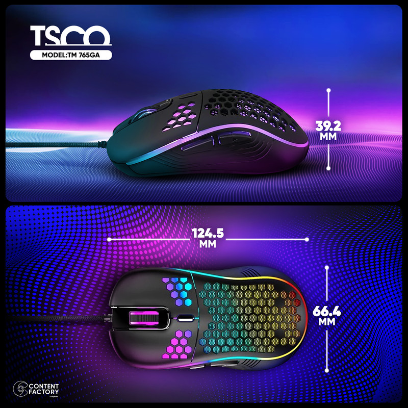 ماوس مخصوص بازی تسکو مدل TM 765GA یکی از تولیدات برند تسکو است. این برند ایرانی معروف محصولات متنوعی از جمله لوازم جانبی کامپیوتر را تولید میکند. بیش از دو دهه از آغاز فعالیتهای برند تسکو میگذرد و در این مدت محصولات این برند توانستهاند نظر بخش قابلتوجهی از مشتریان را به دست بیاورد. این مدل ماوس برند تسکو هم به دلیل قیمت مناسب و ویژگیهای خوبی که دارد، جزو یکی از محصولات پرفروش این شرکت محسوب میشود. ماوس مذکور توسط رابط USB به کامپیوتر و لپتاپ متصل شده و با سیم کار میکند. محدوده دقت این ماوس حدود 3200 است. به همین دلیل برای انجام کارهای روزمره با کامپیوتر انتخاب بسیار خوبی به نظر میرسد. همچنین در ساخت این مدل ماوس از حسگر اپتیکال استفاده شده است. ماوسهایی با این ویژگی به دلیل حساسیت زیادی که نسبت به حرکت دارند از دقت بالایی برخوردار هستند. از دیگر ویژگیهای این مدل ماوس میتوان به طراحی بسیار خاص و منحصربهفرد و وزن مناسبش اشاره کرد.